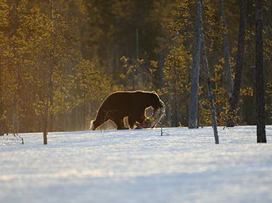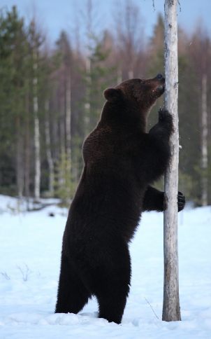 Due to the various lakes and ponds, and the quickly changing climate, during April bears can be seen on ice, snow and wetland.