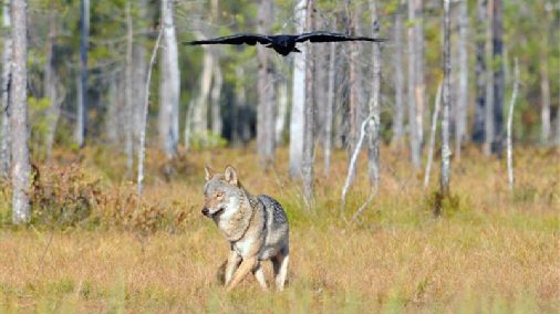 If the conditions are right it is even possible to see wolves alongside the other apex predators in the area; the wolverine and the bear. Wolves have a strong symbiosis with ravens and where you see ravens gathering the wolves may not be far away. Over recent years individual wolves from a local pack have been seen to frequent the area, usually the wolves travel individually to cover ground as a pack more easily, however, in the winter months it is more common for wolves to travel together, as it makes for easier work travelling through the snow as a group.